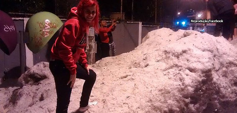 “Taboão também neva…hehehe”, brincou Ana Paula Vicente, 24, do Parque Pinheiros, sobre montanha de gelo. Bairros de São Paulo vizinhos também registraram granizo, que deixou vias alvas e ainda estrago. Uma moradora de prédio no Campo Limpo teve o carro amassado e vidraça quebrada. “Pois é, só prejuízo… Amassou o carro de um monte de gente. Mas tudo bem, vão-se os aneis, ficam os dedos, o que é material a gente recupera”, disse a gerente Luciana Lopes, 35.