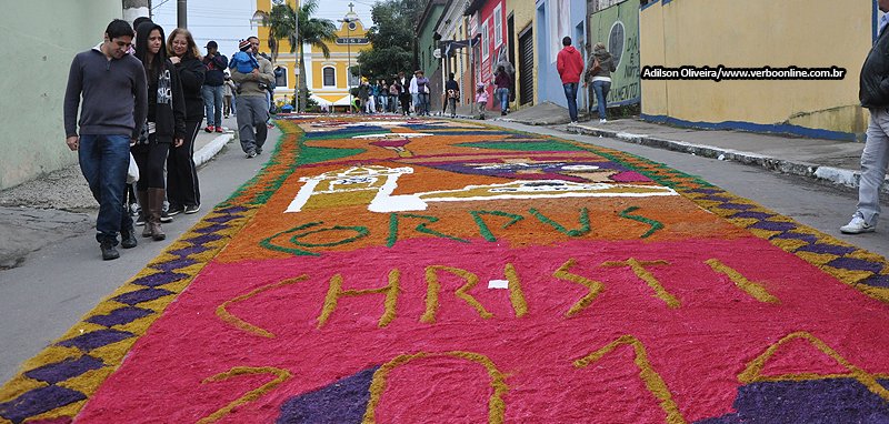 Igrejas em quase todas as cidades da região celebraram Corpus Christi nesta quinta-feira, dia 19, com ruas enfeitadas de desenhos feitos com materiais como serragem, pó de café, pedras e areias coloridas, os famosos tapetes de símbolos religiosos, mesmo sob frio. A solenidade católica do “Corpo de Cristo”, instituída no século 13 pela Igreja e que chegou ao Brasil com os colonizadores portugueses, celebra a presença real de Jesus na hóstia consagrada na missa (eucaristia).
