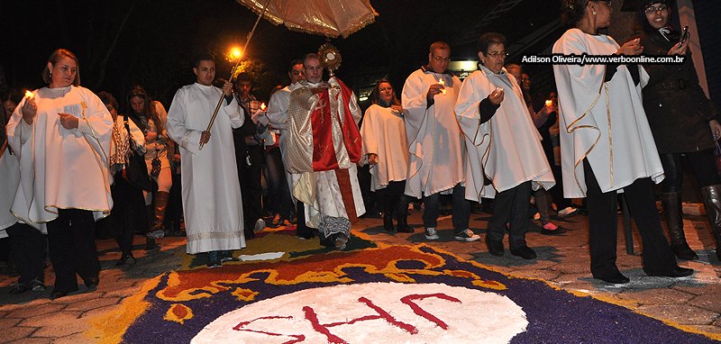 A missa à tarde, com bênção do Santíssimo, seria campal, mas aconteceu no santuário devido a garoa e frio intenso, sem procissão sobre os desenhos. “Eu acho que devia ter passado encima dos tapetes, é a tradição”, disse a atendente Míriam Aparecida de Jesus, 61, quando não chovia. No Parque Paraíso, os fiéis seguiram o padre Odair Eustáquio na procissão do Corpo de Cristo sobre os tapetes, entre eles o comemorativo de 25 anos da Paróquia Maria Mãe dos Caminhantes.