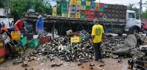 Caminhão derruba carga de cachaça em Embu após ser roubado por quadrilha
