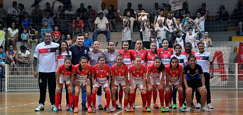 Futsal feminino de Taboão e Super Raça (fundo), que fazem campanha de solidariedade a vítimas em Mariana