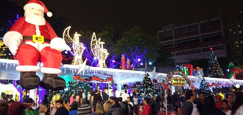 Árvores com tronco cuidadosamente revestido de microlâmpadas de cores diferentes, portais iluminados, pinheiros coloridos, anjos e estrelas de vários tamanhos reluzentes, túnel de luzes, presépio com bonecos em tamanho natural, além de Papai Noel gigante sentado no alto da marquise, diante de pessoas com brilho nos olhos. A praça central de Taboão da Serra, decorada e iluminada para o Natal, encanta moradores e visitantes pelo quinto ano consecutivo.