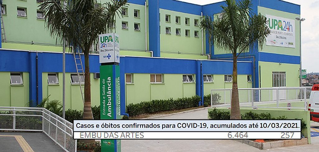 A Secretaria Municipal de Saúde orienta os pacientes com outras doenças a procurar o Pronto-Socorro Central, onde também é possível realizar a testagem de covid-19. Embu registra 257 mortes pelo coronavírus e 6.464 casos desde o início da pandemia – há uma semana, contava 252 óbitos e 6.302 confirmações. O município tem taxa de letalidade de 4% e de mortalidade de 92,93 óbitos por 100 mil habitantes – o Estado tem taxas de 2,9% e 135,17.