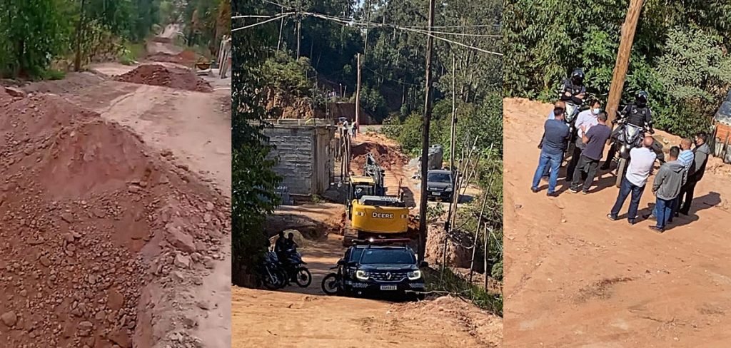 Com escolta de viaturas da Guarda Civil Municipal e uso de uma retroescavadeira, funcionários da prefeitura estiveram no loteamento na sexta-feira (2) para executar ações que prejudicaram as famílias, apontam moradores que procuraram o VERBO. Um morador enviou à reportagem um vídeo com várias crateras abertas. “Mais um dia de trabalho, descendo a pé, porque o nosso prefeito, ‘bonzinho’, tirou o nosso direito de ir e vir”, reclama.