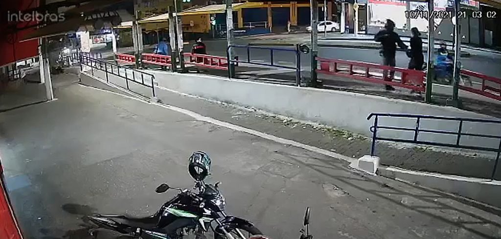 Dois homens em uma moto assaltaram na noite de quarta-feira (10) duas pessoas em ponto de ônibus no Jardim Santa Tereza, em Embu das Artes, em pleno largo (centro comercial) do bairro. Câmera de segurança registrou a ação, na avenida João Paulo 2º, altura do número 1.000. O ladrão na garupa desceu, roubou uma vítima e na segunda abordagem chegou a dar um soco na mulher antes de arrancar o pertence. Ele teria levado celulares.