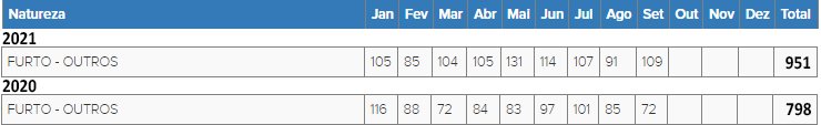 FURTO NOS PRIMEIROS NOVE MESES DESTE ANO EM EMBU DAS ARTES