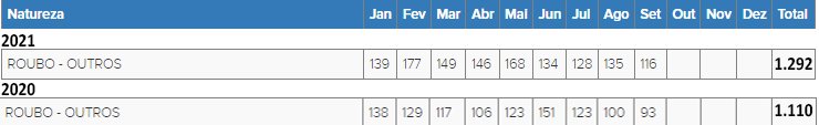 Já o furto cresceu 19% em Embu, com 951 nos nove meses iniciais deste ano, contra 798 no mesmo período de 2020. Com as estatísticas mais recentes como uma espécie de gangorra, após registrar queda de 28% em 2017 (588 registros) e de 21% em 2018 (465), o município amargou acréscimo de 78% no delito de janeiro a setembro de 2019 (829 registros). Já em 2020 teve redução de 4%. Mas agora volta a ter alta significativa, com maior número absoluto.