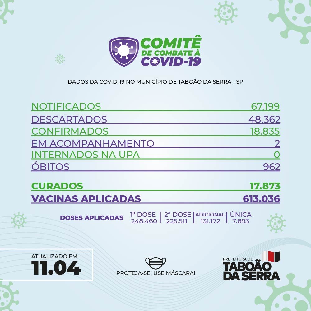 TABOÃO DA SERRA REGISTRA 962 MORTES POR COVID-19 – 48 APENAS NESTE ANO – E MAIS DE 18.800 CASOS
