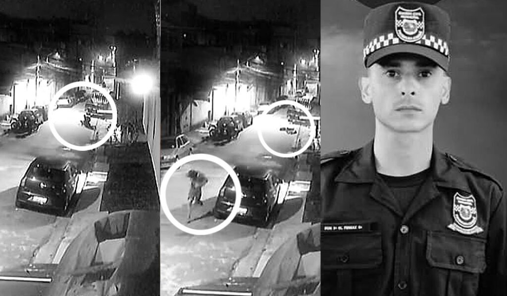 Câmera de vigilância registrou, a distância, o crime. O GCM e o amigo levaram o suspeito para a calçada, quando iniciaram uma luta. Após um cair e não se mexer mais, aparentemente o amigo do guarda, os outros dois seguiram em combate. O homicida tirou a arma do oponente, que seria o GCM, e atirou três vezes, quando cessou a reação. É quando se veem os primeiros clarões de tiros. Depois, o atirador disparou ao menos mais sete vezes nas vítimas, no chão.