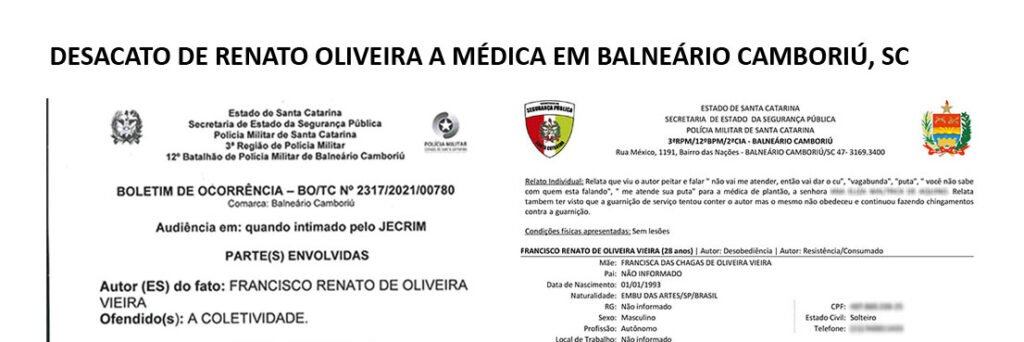 ESCATOLÓGICO 2 Sandra Manente (Republicanos) disse que Renato é extremamente habilidoso e de “inteligência que chama a atenção, por isso, às vezes é criticado”. Natinha (Republicanos) disse que viu “tanta gente falando mal desse moço”, mas que Renato “é uma pessoa que tem um bom coração, um cara do bem”. Os fatos: Renato, alcoolizado, xingou uma médica de “puta” em Santa Catarina e agiu de tocaia em tentativa de homicídio contra jornalista de Embu. Vai a júri popular.