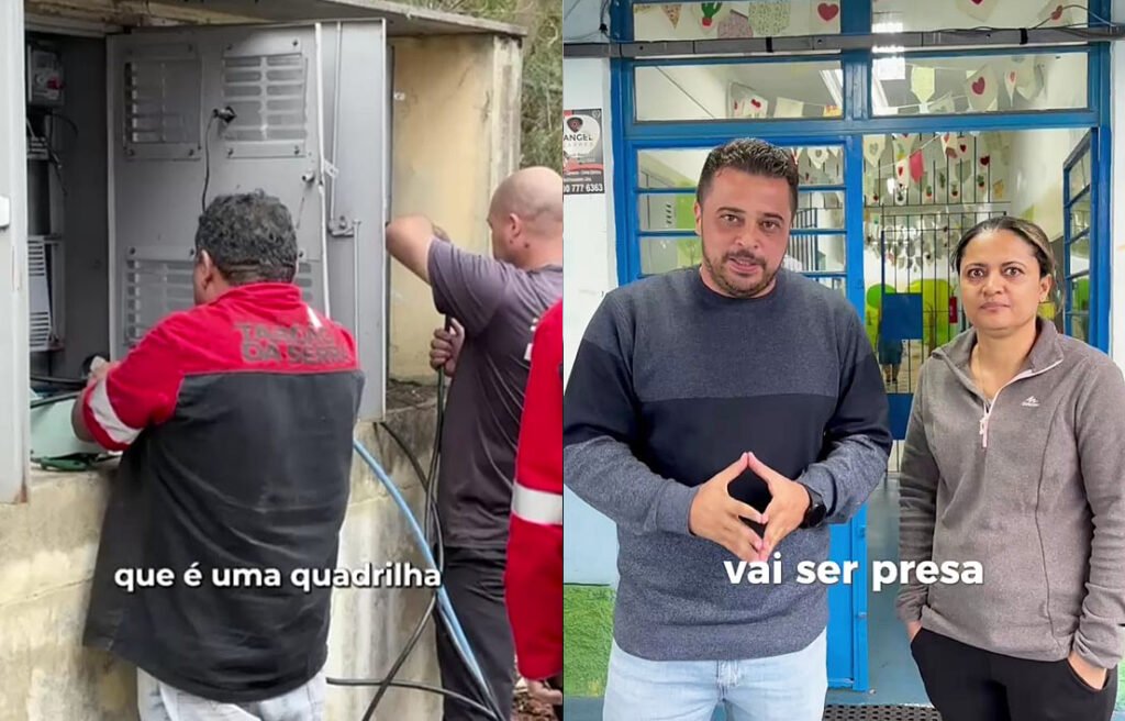 CONTRA CRIME Diante da onda de furtos de fios nos equipamentos de Taboão da Serra, principalmente em escolas, o vereador Anderson Nóbrega (PSD) fez uma fala contra os responsáveis após ataques às creches no Parque Pinheiros. “É uma quadrilha de vagabundos que está furtando as escolas, dando prejuízo aos pais, à prefeitura. As crianças precisam ir para a escola”, disse em vídeo na creche Jurema. “Essa quadrilha vai ser presa”, falou em vídeo na creche Pelezinho.