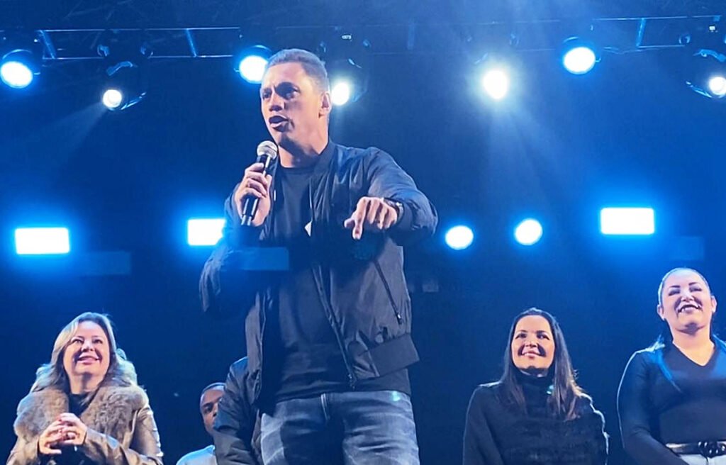 Prefeito Engenheiro Daniel fala no palco do 'Arraial da Arena' no sábado sobre a festa nos dois últimos fins de semana, com artistas locais, e convida público a prestigiar | AO/Verbo
