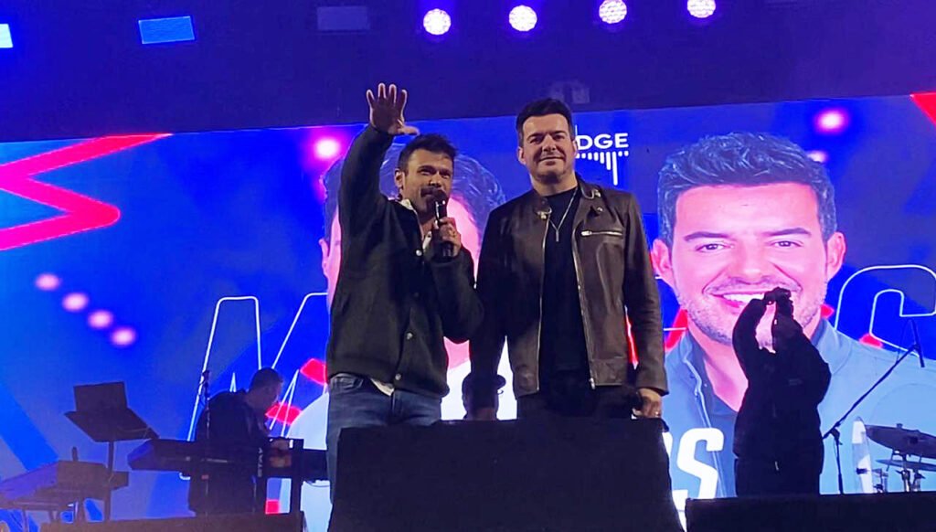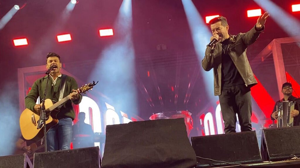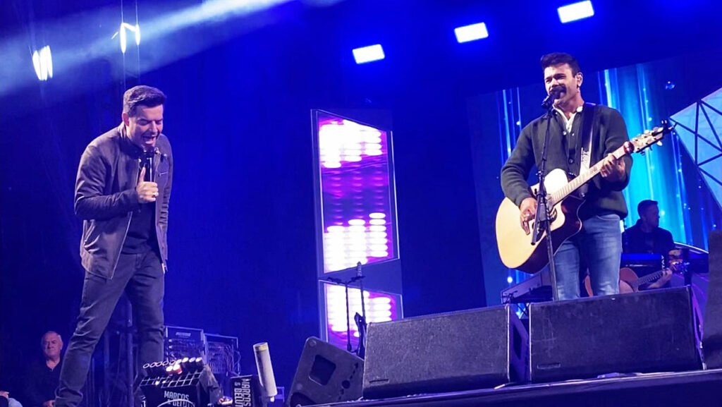 Marcos e Belutti cantaram neste domingo (20) no “Arraial da Arena” em Taboão da Serra e proporcionaram emoção e diversão na Arena Multiuso lotada. Anunciada há menos de uma semana do show, a dupla sertaneja interpretou grandes sucessos com entusiasmo, irreverência e sentimento e fez o público esquecer o frio, em 1 hora e meia no palco. Os fãs vibraram com o talento, animação e o carinho dos artistas, que fecharam o terceiro fim de semana da festa.