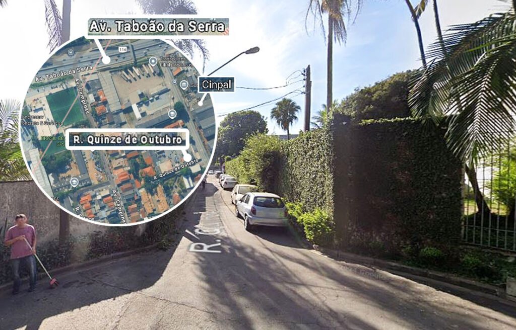 A cena do crime é uma transversal da estrada Benedito Cesário de Oliveira, a primeira no sentido bairro, para quem deixa a avenida Taboão da Serra, antiga rodovia Régis Bittencourt. É possível ver pelo vídeo que o motoqueiro fez a conversão à direita e entrou na Quinze de Outubro, ou seja, que provavelmente era perseguido desde a avenida. Também pelas imagens, é visível que, em mão contrária, a dupla entra à esquerda para fugir, para a mesma avenida Taboão.