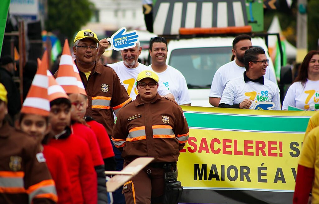 No último feriado da Independência, agentes de trânsito participaram do desfile cívico de 7 de Setembro ao lado de alunos da Emeb Ayrton Senna, no Parque Marabá, levando a mensagem de cidadania e segurança viária para todos que acompanharam o evento. “O nosso compromisso e do prefeito Engenheiro Daniel é promover um trânsito seguro em Taboão da Serra, com base em três pilares: educação, engenharia viária e esforço legal”, afirma o secretário Marcos Paulo.