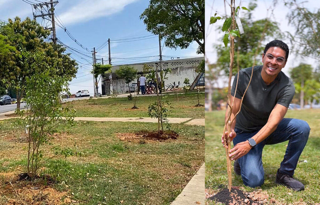 A Secretaria de Meio Ambiente de Taboão da Serra realizou um plantio de mudas de árvores, na sexta-feira (19), na praça entre as ruas Beatriz Terezinha e José Domingues de Moraes, no – sugestivo – Jardim das Oliveiras (região do Marabá). Bruno Almeida, nomeado secretário da pasta neste mês pelo prefeito Engenheiro Daniel (União Brasil), esteve à frente da iniciativa. A ação foi para marcar o Dia Nacional da Árvore, comemorado em 21 de setembro, neste domingo.