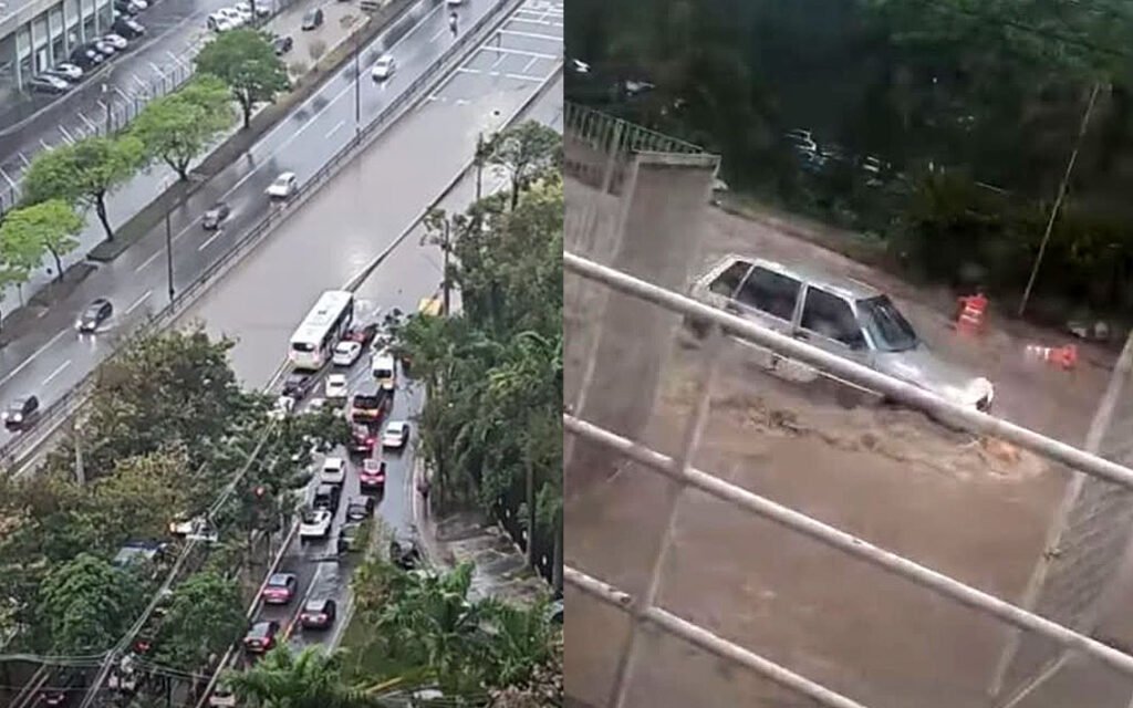 Em Embu, a Régis no km 276, que fica sempre debaixo d’água a cada chuva mais forte, voltou a alagar, no sentido bairro. Carros só conseguiram trafegar na faixa à esquerda. O centro também alagou, na rua Andronico dos Prazeres Gonçalves, em frente à sede da administração municipal. “Prefeitura de Embu das Artes inaugurando piscina popular”, ironizou um morador. A rua Vereda dos Buritis, no bairro Vale do Sol, ficou bloqueada com a queda de uma árvore.