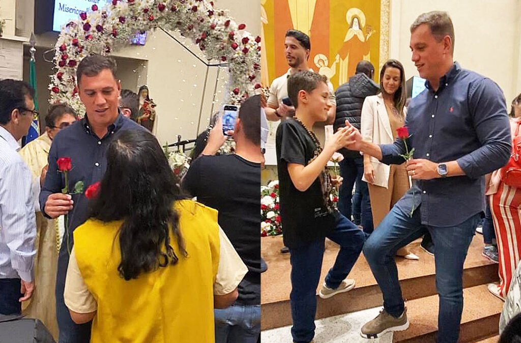O prefeito Engenheiro Daniel (União Brasil) participou da missa de Santa Terezinha (das 18h), nesta quarta-feira, 1º de outubro, dia da santa, padroeira de Taboão da Serra, oficialmente feriado municipal do “Amor Misericordioso de Deus”, no santuário no centro de Taboão. Acompanhado da primeira-dama Kamila Bogalho, ele pediu “que Deus continue abençoando a nossa cidade”. “Nos guie, dê direção para que a gente possa fazer o melhor por Taboão da Serra”, disse.