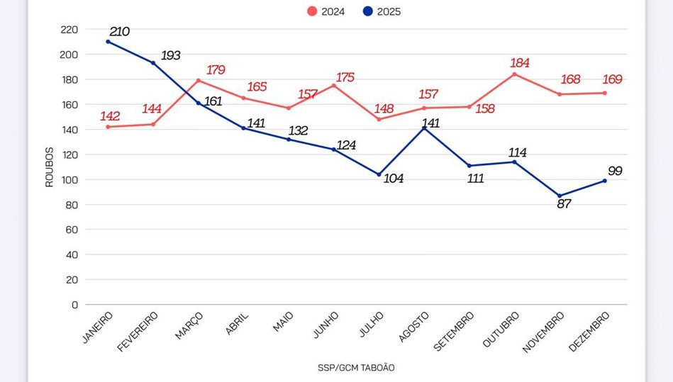 TABOÃO DA SERRA REGISTRA QUEDA DE ROUBOS EM 2025, EM COMPARAÇÃO AO ANO ANTERIOR