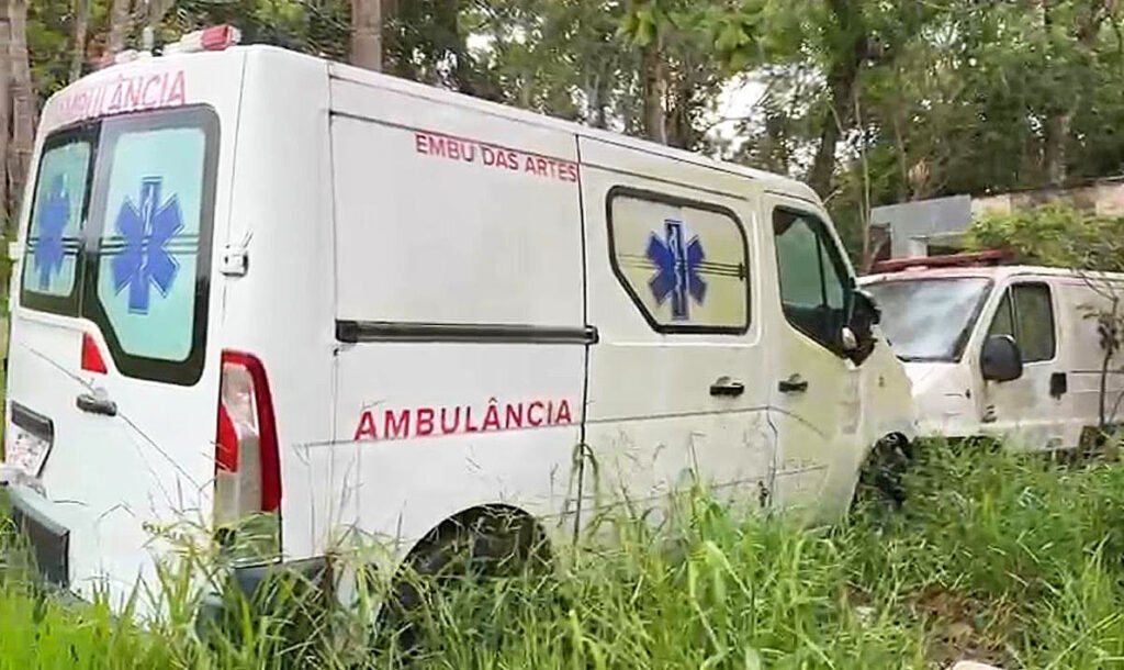 Ambulâncias da Prefeitura de Embu novas são achadas abandonadas em terreno baldio em meio a mato