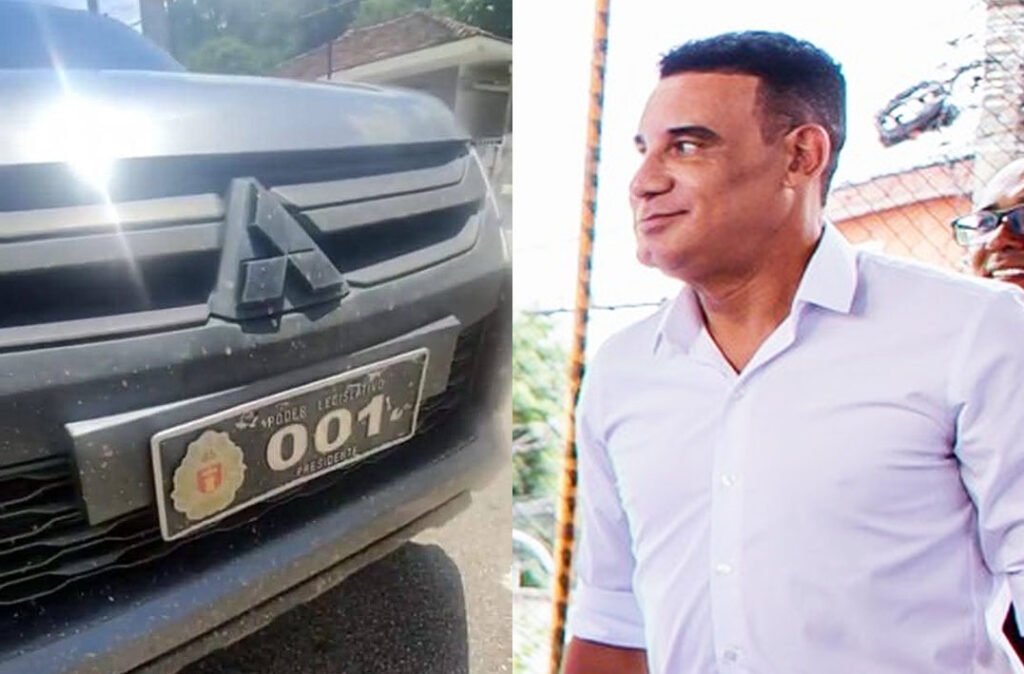 Os policiais se depararam, durante a operação “Carnaval 2026”, com uma caminhonete Mitsubishi Triton cinza na rodovia MGC 268 no km 536, em Poços de Caldas, em Minas. Segundo a PM, a equipe deu sinal de parada, mas o motorista não obedeceu e foi perseguido até ser abordado na rodovia SP 342 no km 242, em Águas da Prata, já em São Paulo. Os agentes constataram que o veículo tinha placas (dianteira e traseira) com a inscrição “001 Poder Legislativo Presidente” artesanal.